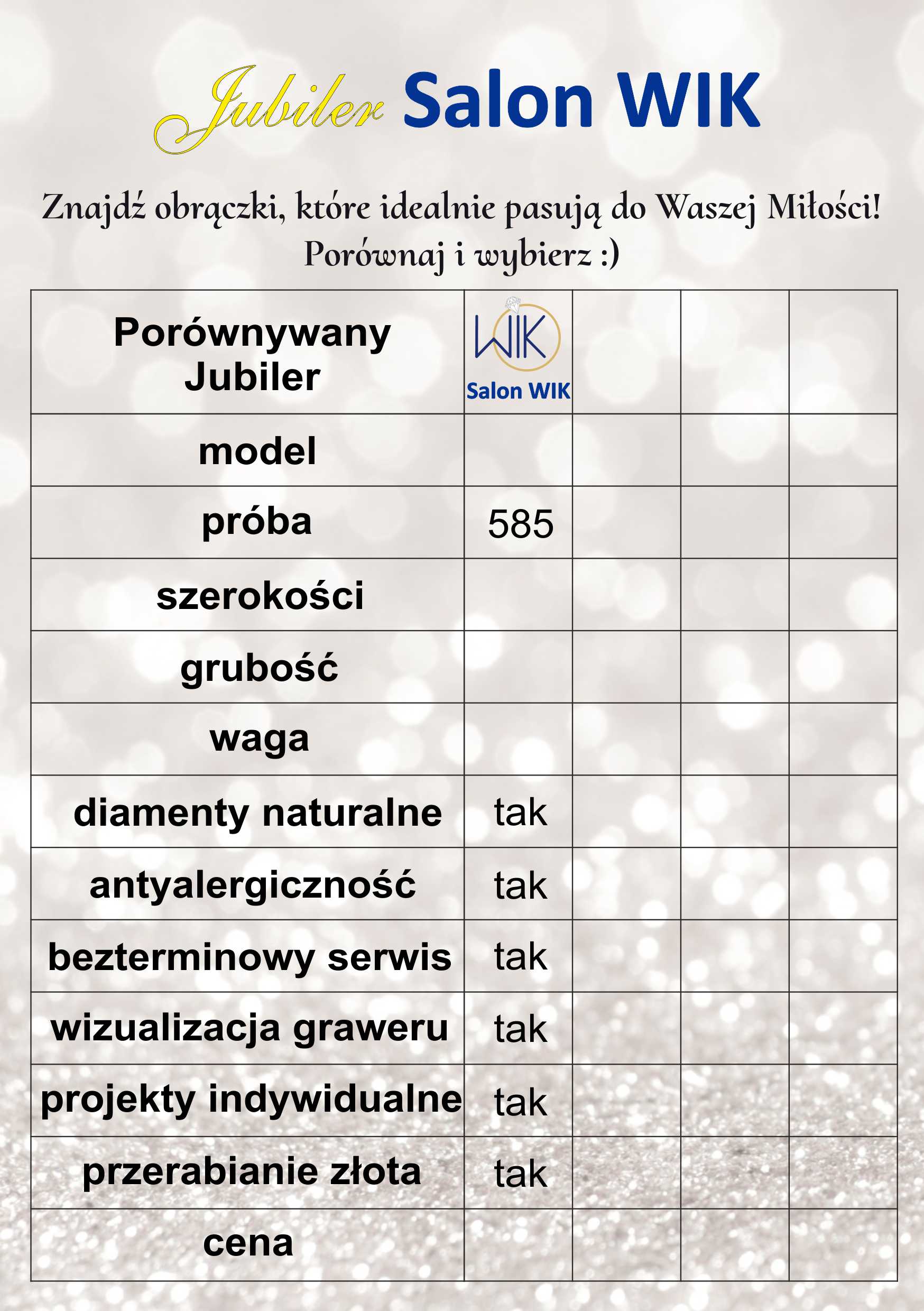 Koniecznie skorzystaj! Pomoże porównać ceny i wagi obrączek