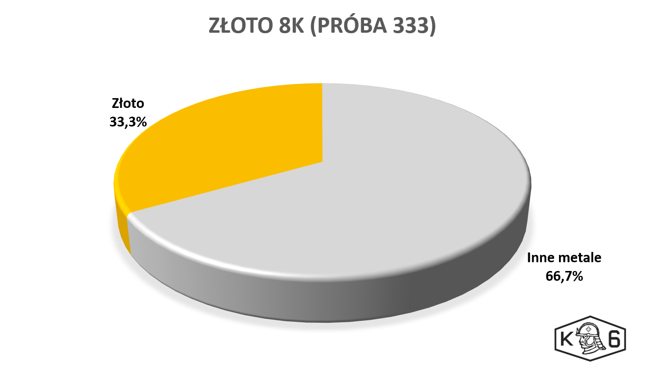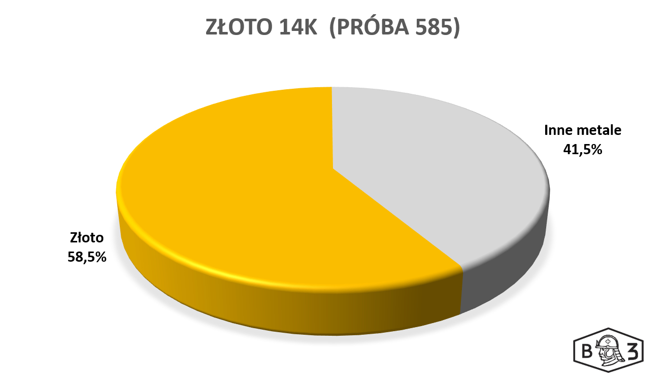 Próba w tabeli oznacza zawartość metalu szlachetnego w produkcie. Przykładowo, złoto 14K to próba 585: