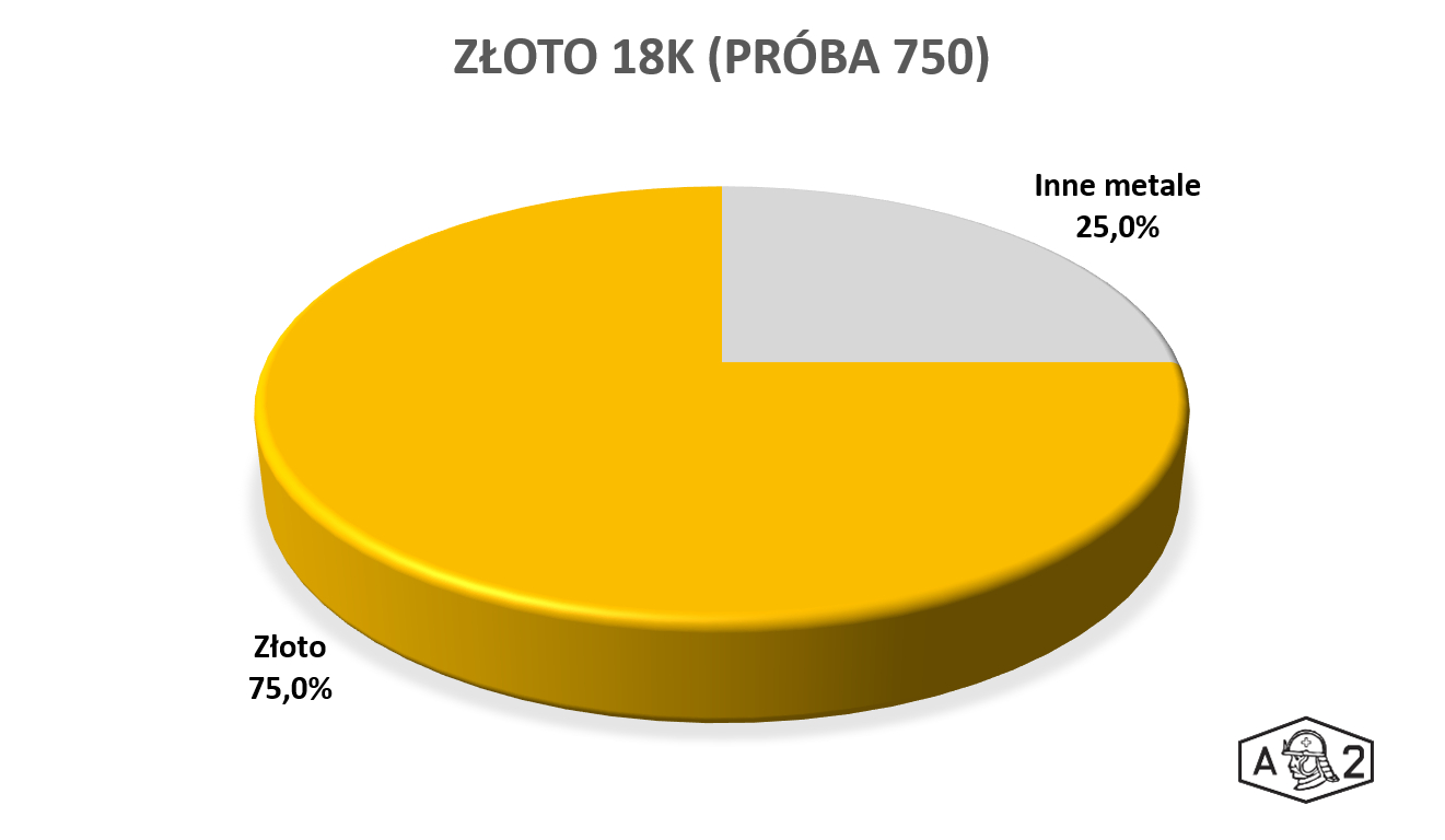 Oznacza to, że zawiera ono co najmniej 75% czystego złota. Co prawda zawiera on więcej złota niż próba 585, ale przez to stop 18K jest bardziej podatny na zgięcia oraz zarysowania. Innym spotykanym w Polsce stopem jest złoto 8K, czyli stop próby 333.